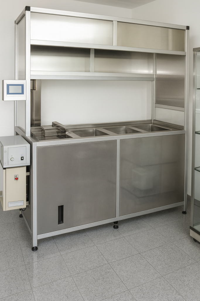 Unsere individuellen Ultraschallanlagen werden exakt nach Ihren Anforderungen entwickelt – für höchste Präzision, Zuverlässigkeit und Effizienz in Industrie, Handwerk und Labor. Ob zur Reinigung empfindlicher Bauteile vor der PVD-Beschichtung oder für andere anspruchsvolle Anwendungen: Wir liefern maßgeschneiderte Lösungen, die sich nahtlos in Ihre Prozesse integrieren lassen.